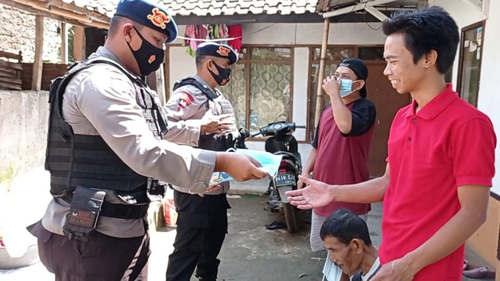 Penajournalis.com – Bulan Suci Ramadhan tidak menjadi halangan bagi Anggota Kompi 2 Batalyon A Pelopor Satuan Brimob Polda Jabar dalam memberikan menghimbau Protokol Kesehatan dan membagikan masker gratis kepada masyarakat di Desa Mekar Laksana Kecamatan Cikancung Kabupaten Bandung.